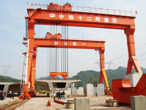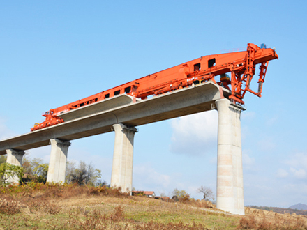 公司主要設(shè)備有:SLJ900T流動式運(yùn)架一體機(jī)、SXJ900T/32M分體式架橋機(jī)及運(yùn)梁車、MG450T提梁機(jī)(跨度有35M~40M,起升凈高20~40M)、ME900T提梁機(jī)、SXJ550T/32M一跨式架橋機(jī)及運(yùn)梁車、SGTJ180T鋪架機(jī)等高鐵運(yùn)架設(shè)備。